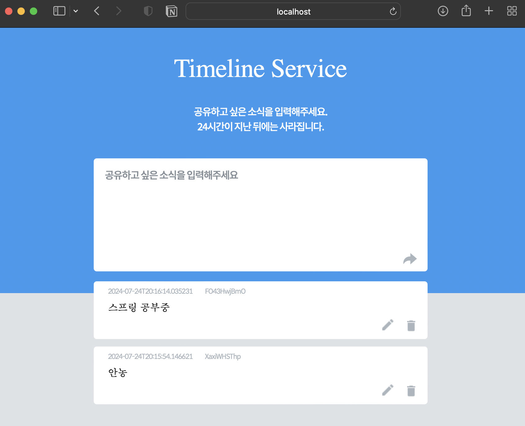 타임라인 서비스 화면